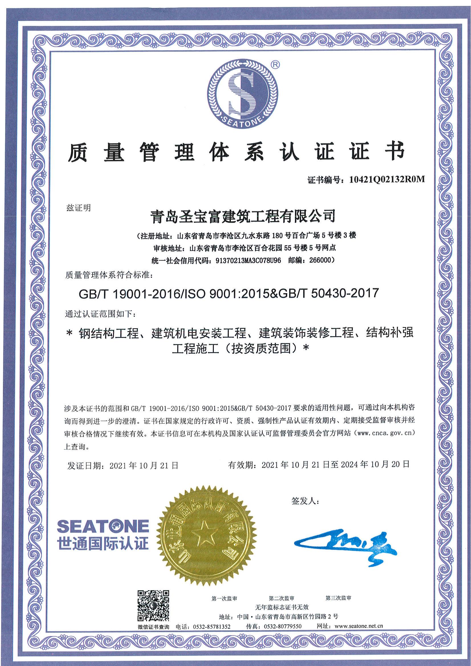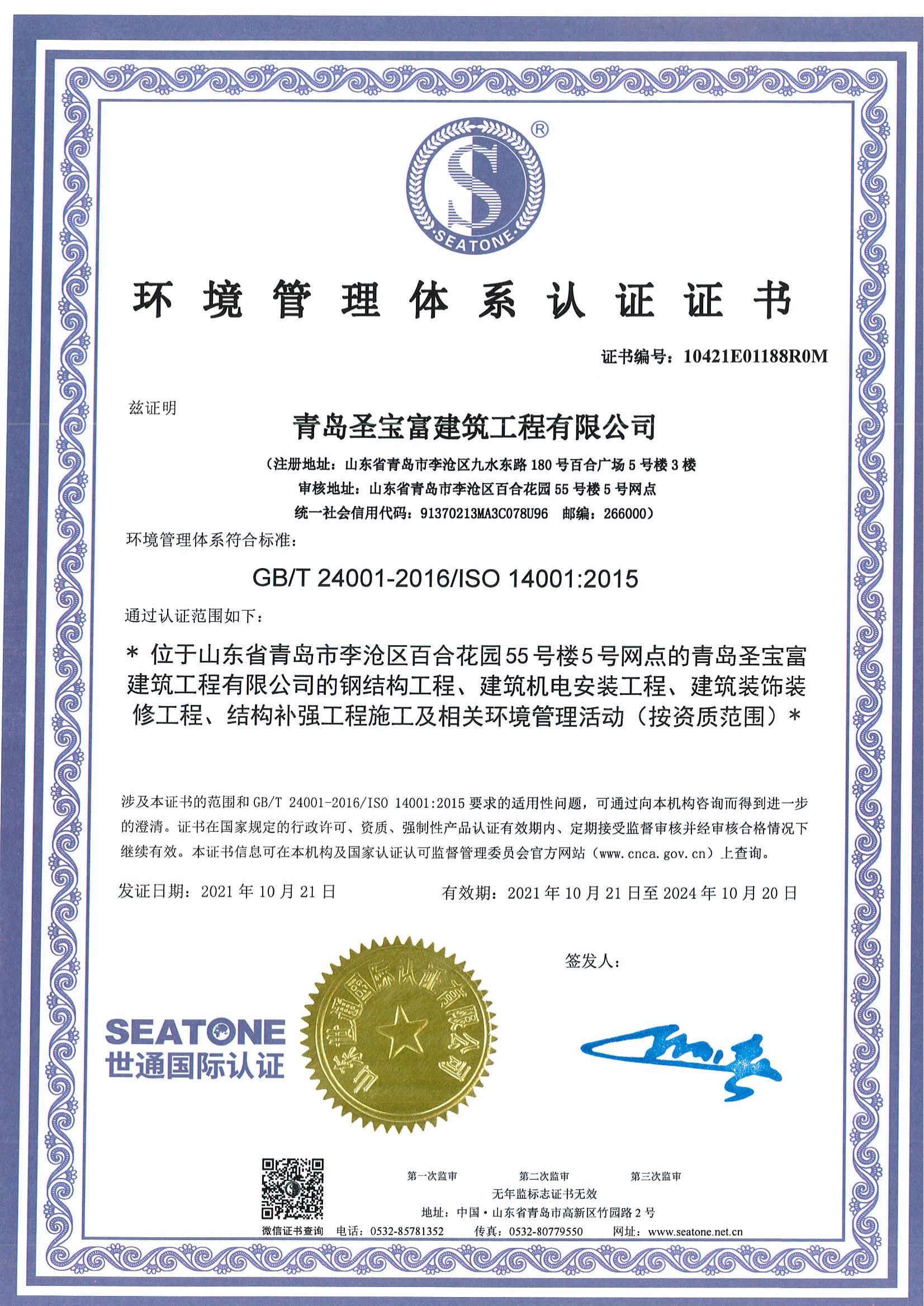 三项管理体系认证证书的取得,是对公司各项管理工作的规范化、标准化的全面检测,是对公司持续稳定健康发展的重要保证。我们将进一步优化和规范各项管理制度,不断提高体系运行的有效性,不断提高公司的管理水平,共同推进公司的快速发展。