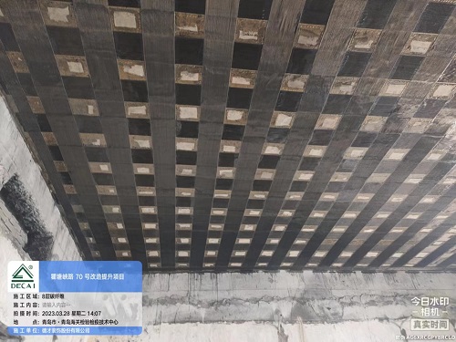 该项目位于青岛市市南区瞿塘峡路70号,建于1992年前后,地上十一层,地下一层,主要结构形式为框架剪力墙结构。我公司主要承包范围为7-12层的结构加固工程,主要结构加固措施包括:柱粘钢加固、柱增大截面加固、梁增大截面加固、梁粘钢加固、梁粘碳纤维加固、板增大截面加固、板粘钢加固、板粘碳纤维加固。